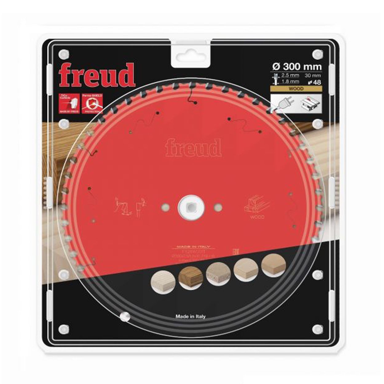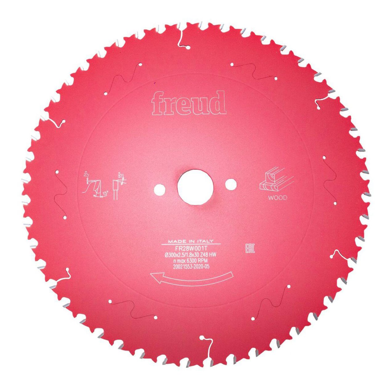 -O Disco de Serra de Mesa para Madeira FR28W001T é o disco freud com maior diâmetro dentro da Nova Linha de Serras Portáteis! Graças ao seu diâmetro de 12” (300mm) e diâmetro de furo de 30mm, ele é compatível com diversos modelos de Serra de Bancada, Serra Meia Esquadria, Esquadrejadeira para cortes em madeira em geral, compensado, MDF cru, MDF laminado de um lado só e MDP cru. Seus 48 dentes oferecem uma espessura de corte de 2,5mm com alta qualidade de acabamento graças à tecnologia freud de Carbide TiCo (carboneto de titânio de cobalto altamente compacto fabricado pela freud), o metal mais duro para serras, que permite fazer cortes melhores por muito mais tempo.