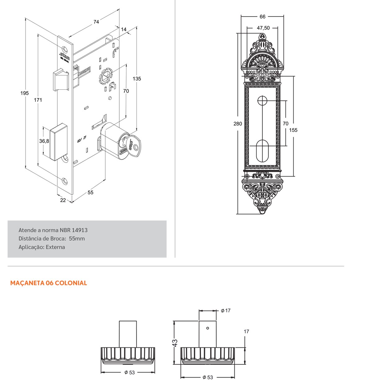 *Todas as Medidas da fechadura estão sendo informadas na imagem tecnica do produto.