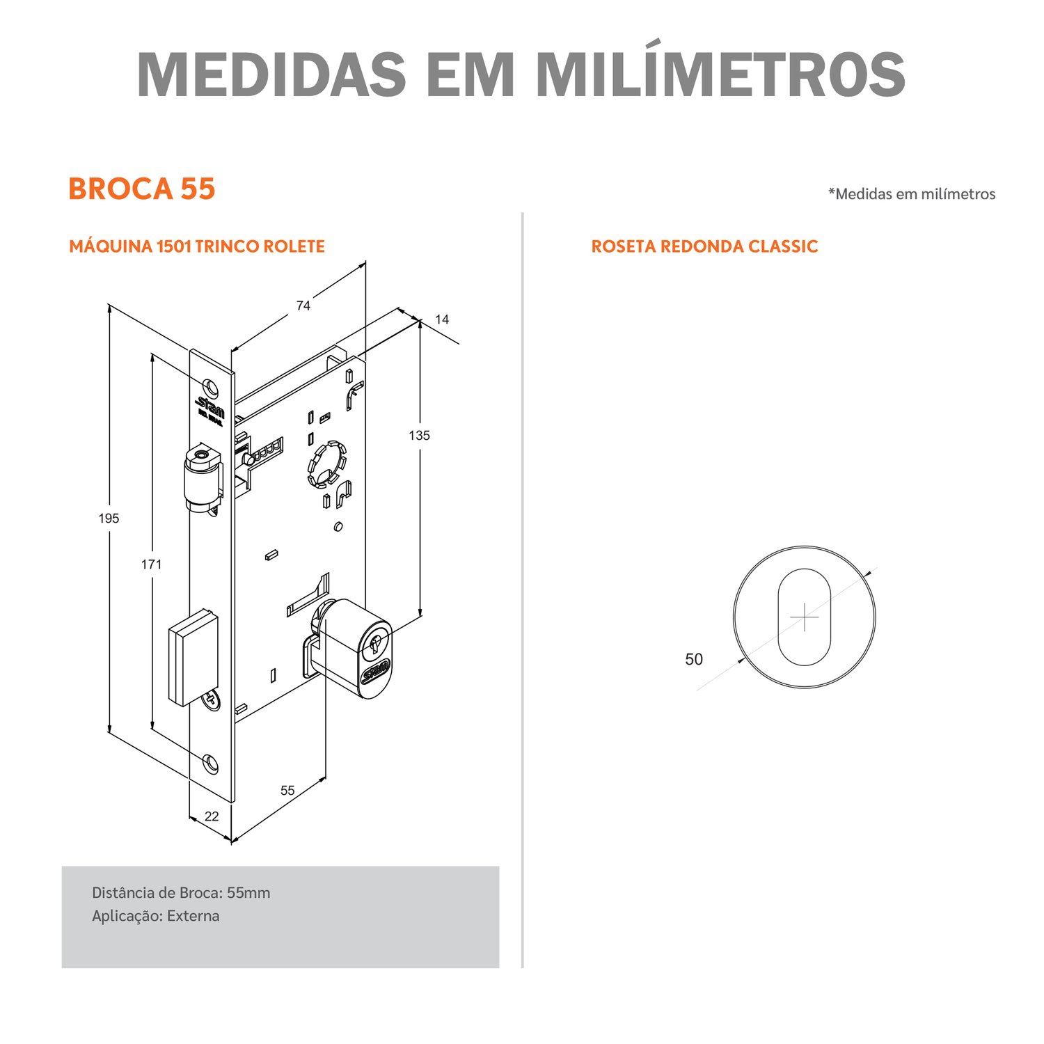 -Acessórios: Chave, cilindro, roseta, contra testa;