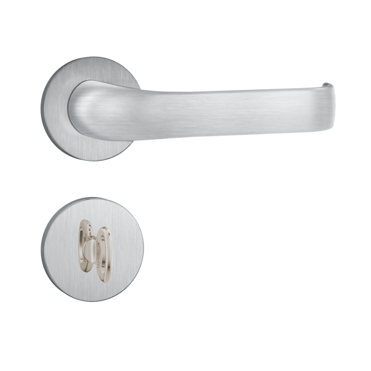 -Fechadura 823/37 para porta de banheiro, com acabamento inox escovado.