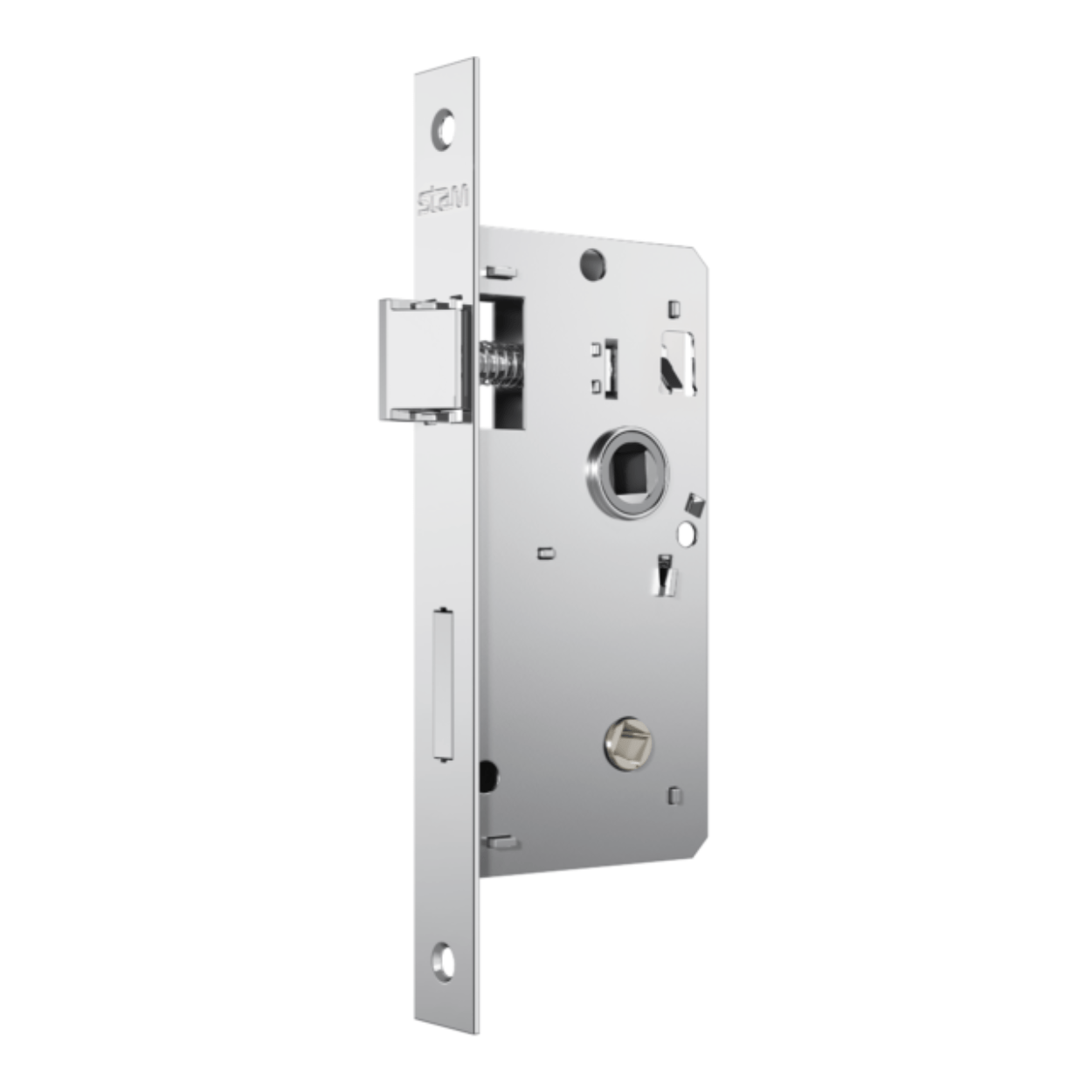 -Fechadura 823/37 para porta de banheiro, com acabamento cromado.