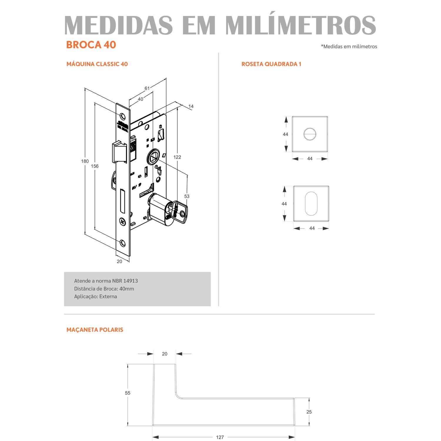 -Composição: Aço ABNT 1010/1020, Aço Inoxidável, Latão, Zamac 5, Plástico de engenharia;