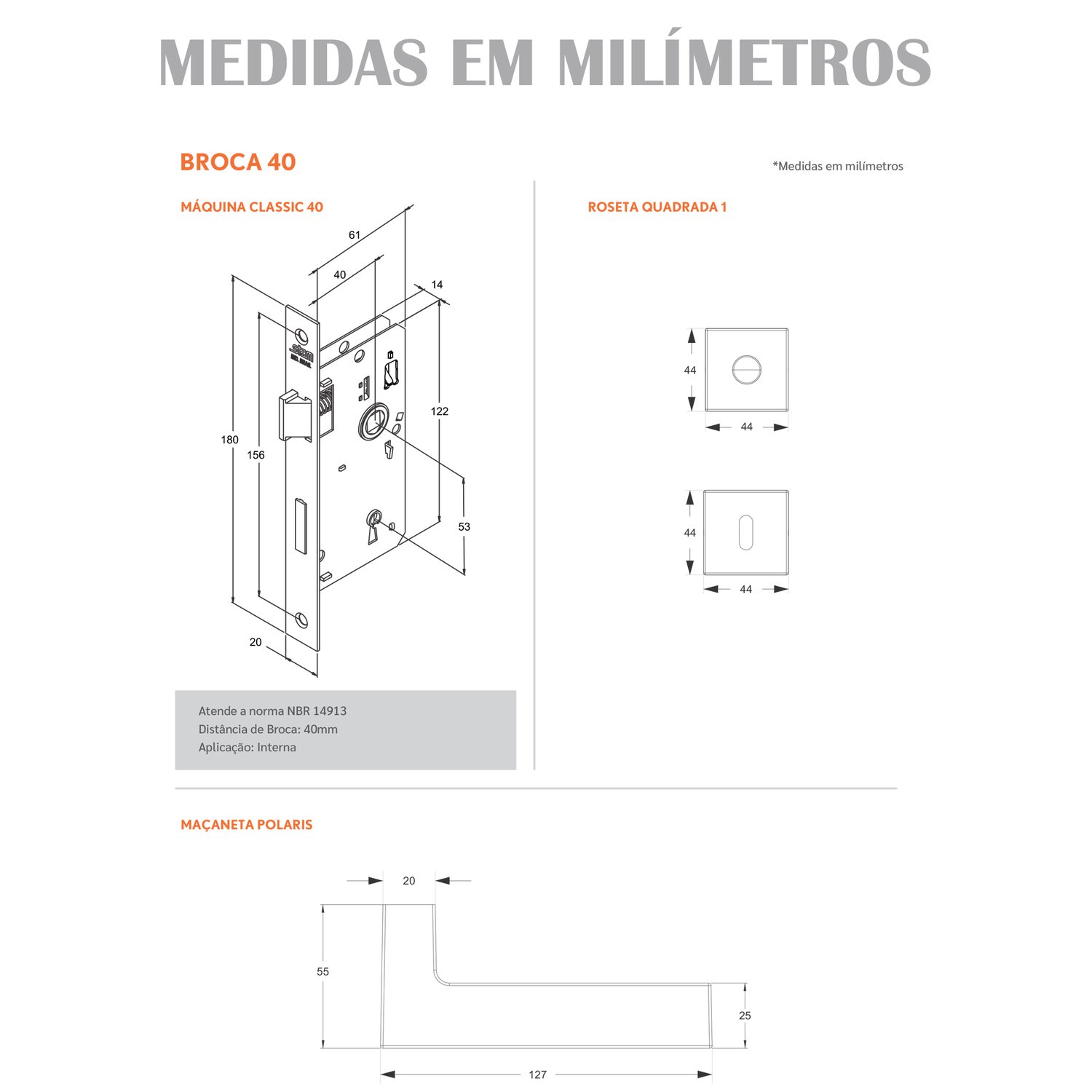 -Distância de Broca: 40mm;
