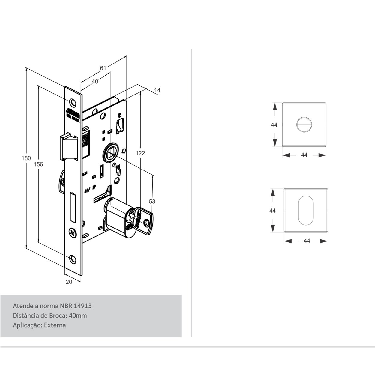 -Distância de Broca: 40mm;