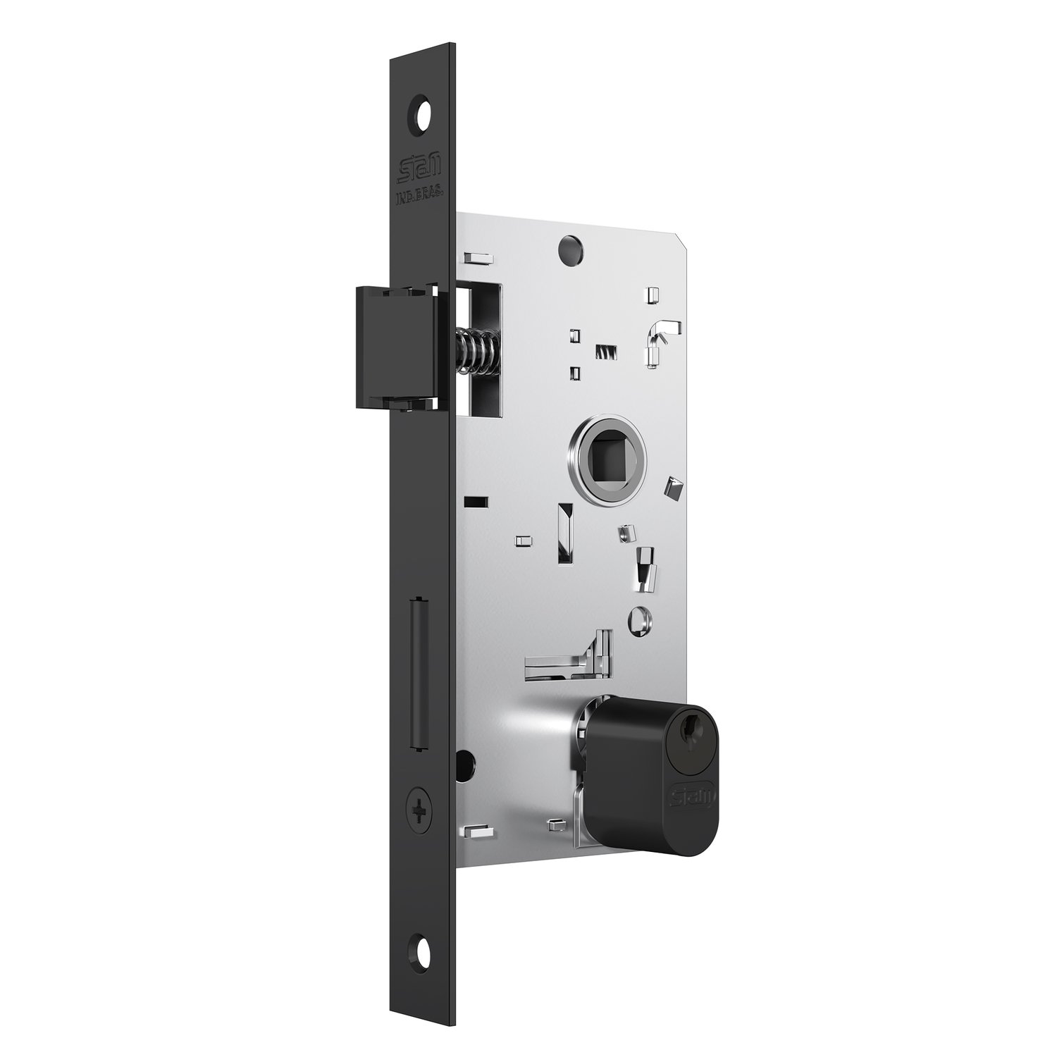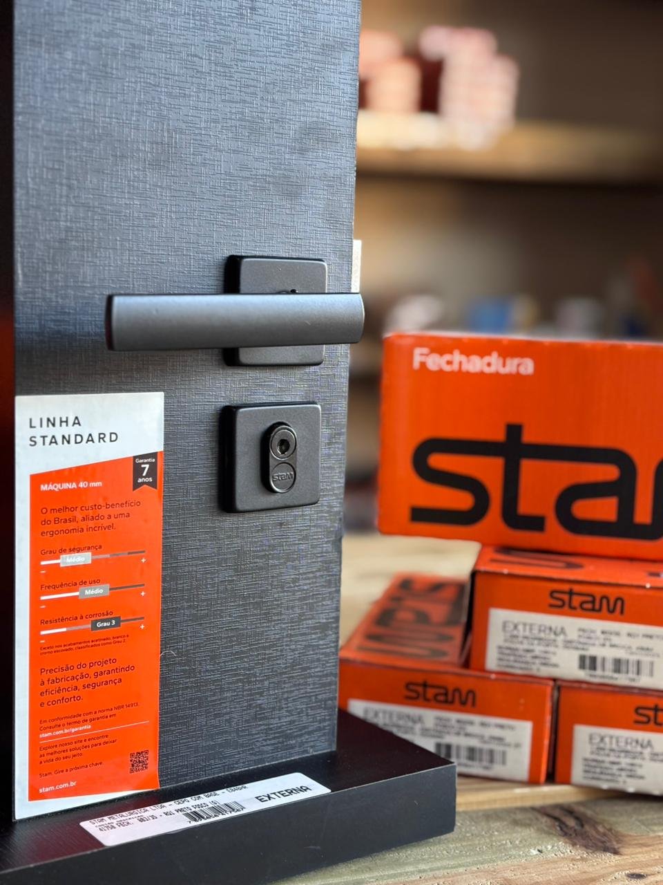 -Fechadura 803/35 para porta externa, com acabamento preto fosco.