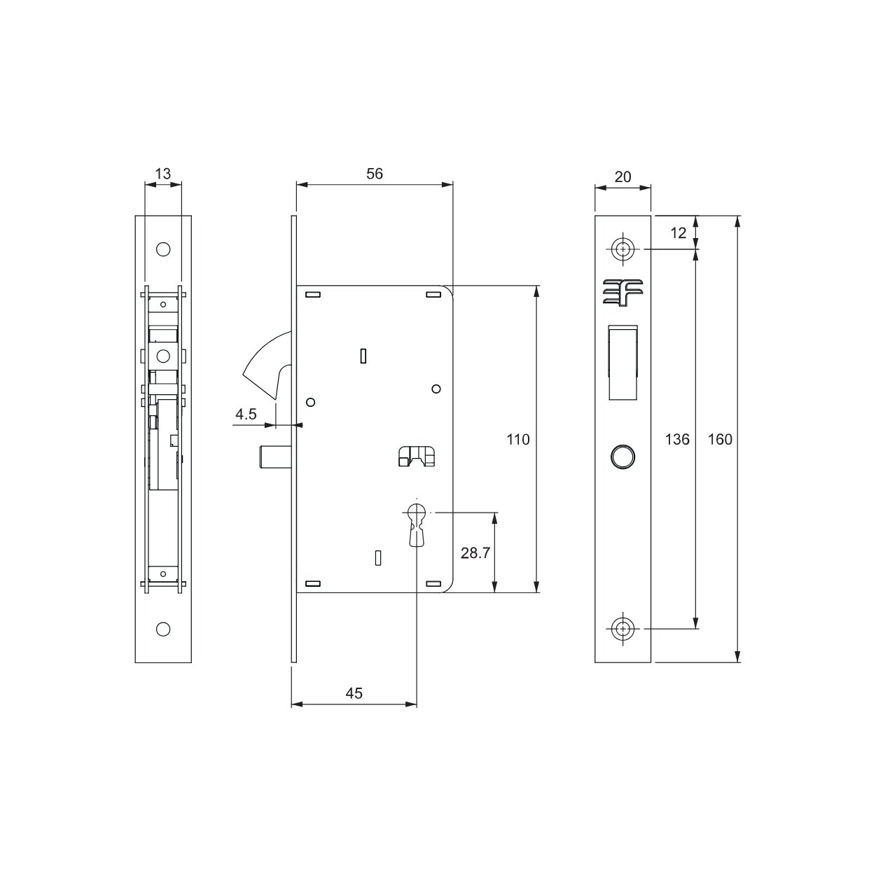 -A chave interna em zamac é articulada para melhor transpasse entre as folhas de porta;