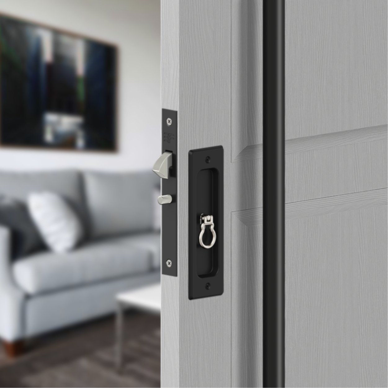 Fechadura Interna Porta De Correr Bico De Papagaio Preta 3f