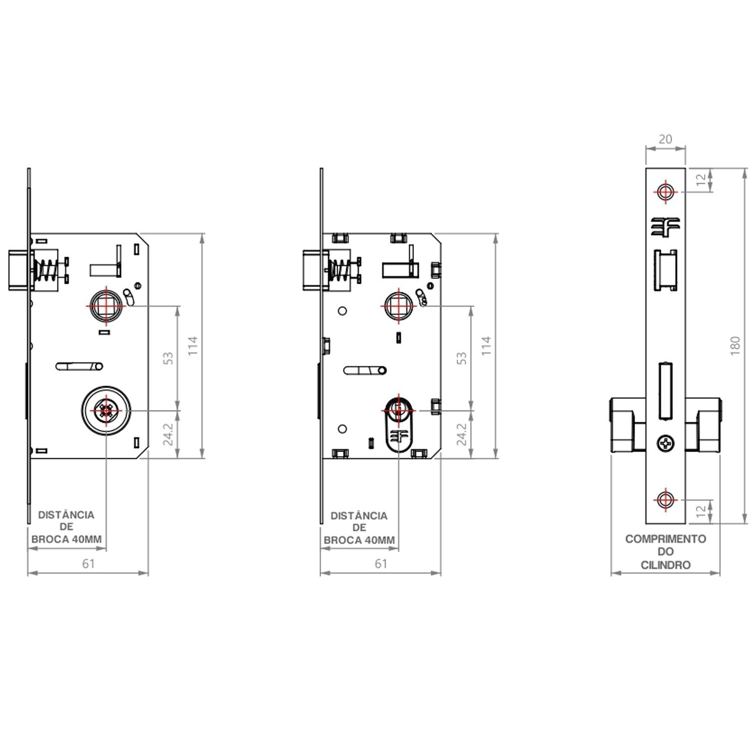 -Distância de broca de 40mm;