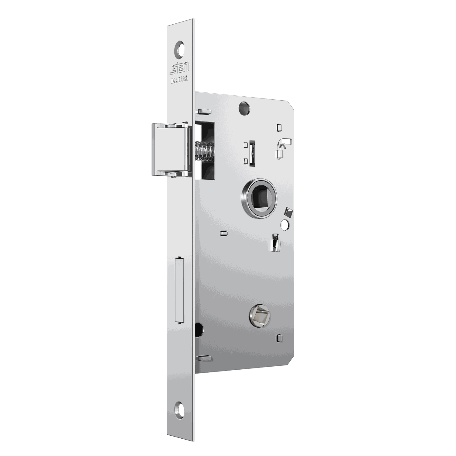 -Fechadura 823/35 para porta de banheiro, com acabamento cromado.