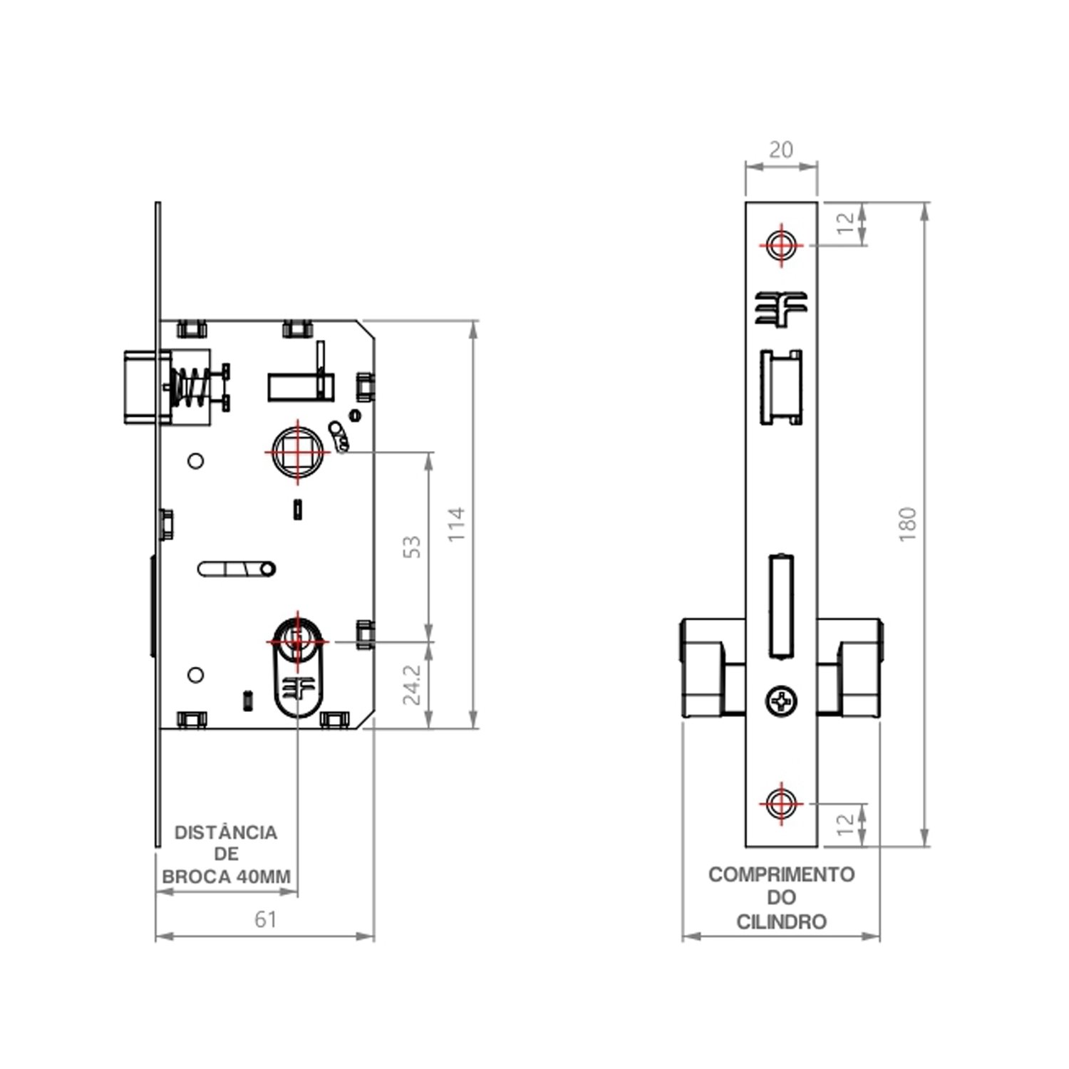 -Distância de broca de 40mm;