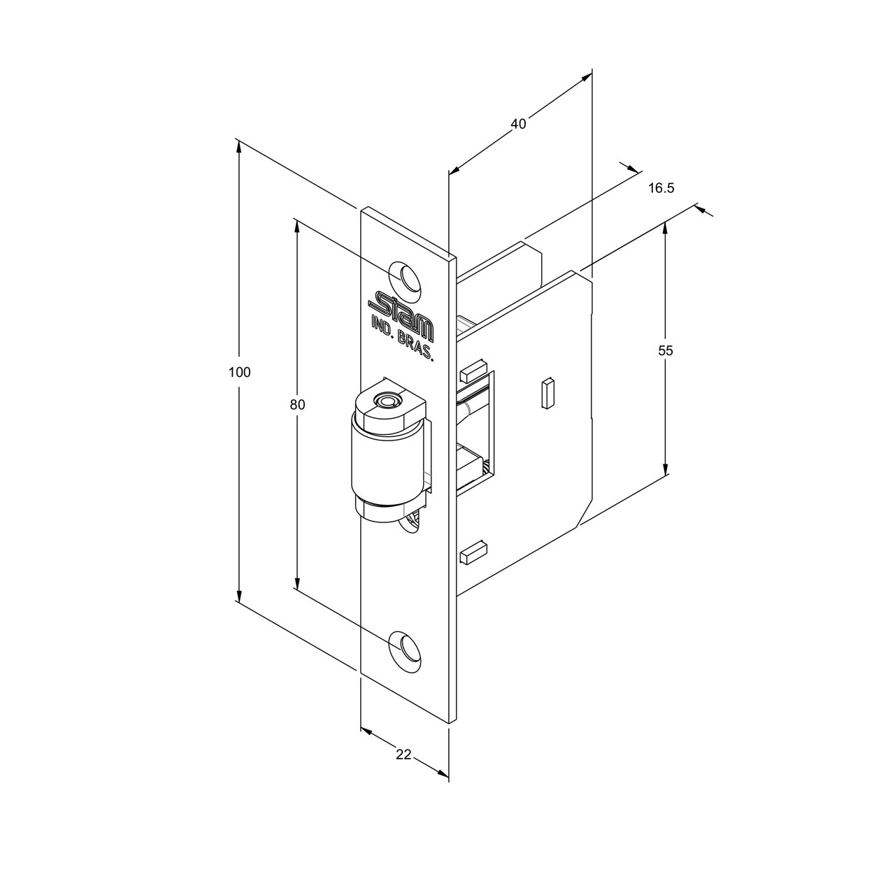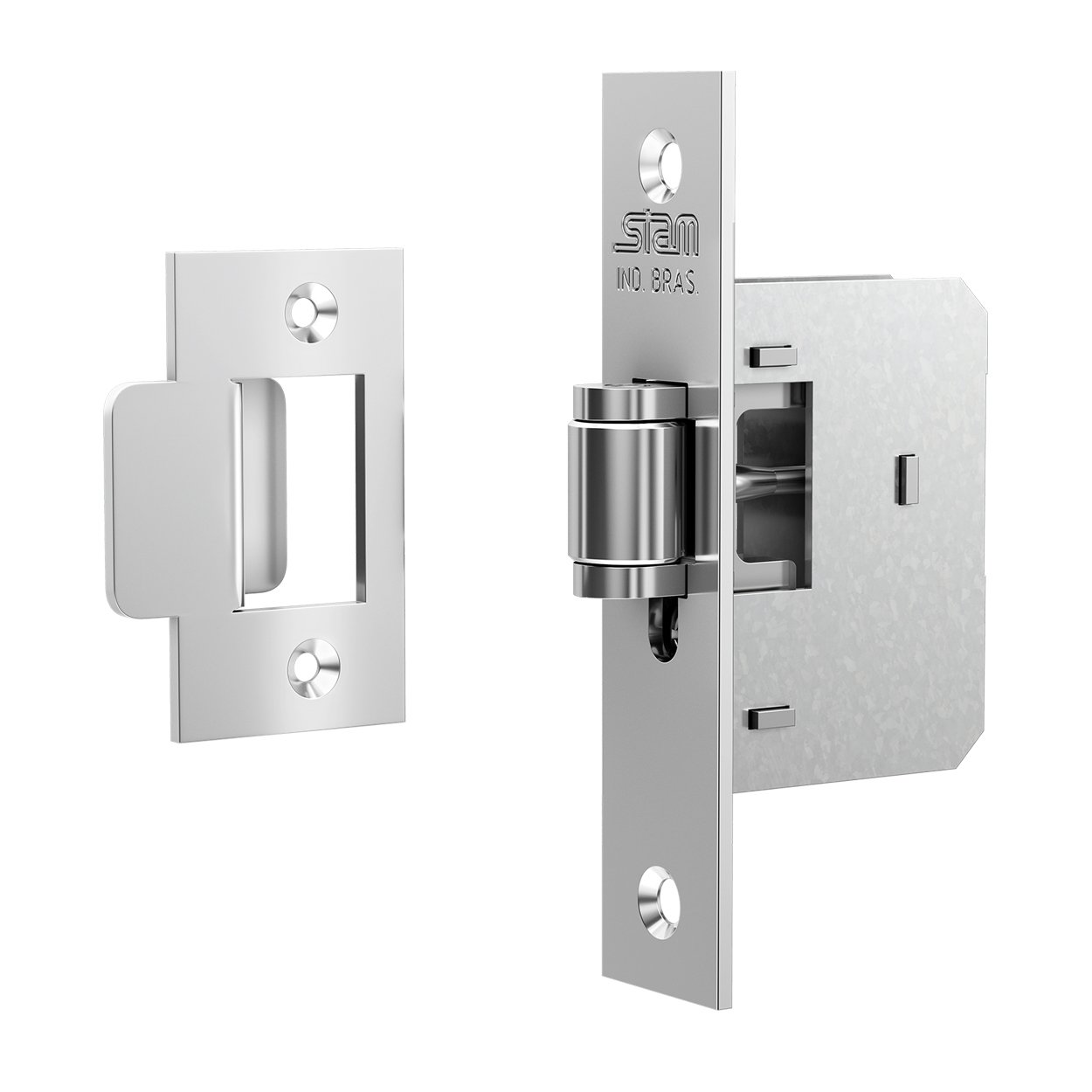 -Fecho compacto e resistente, com profundidade de apenas 40mm, podendo ser utilizada em porta de perfil estreito.