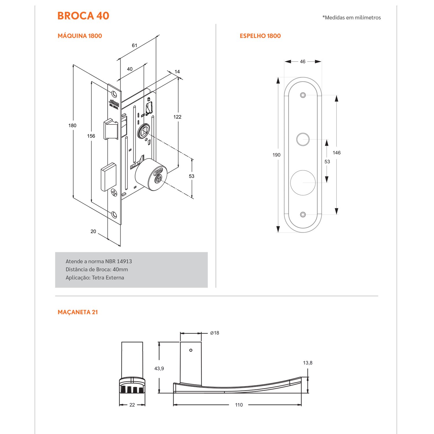 -Composição: Aço ABNT 1010/1020, Zamac, Aço Inox, Latão, Plástico de Engenharia;
