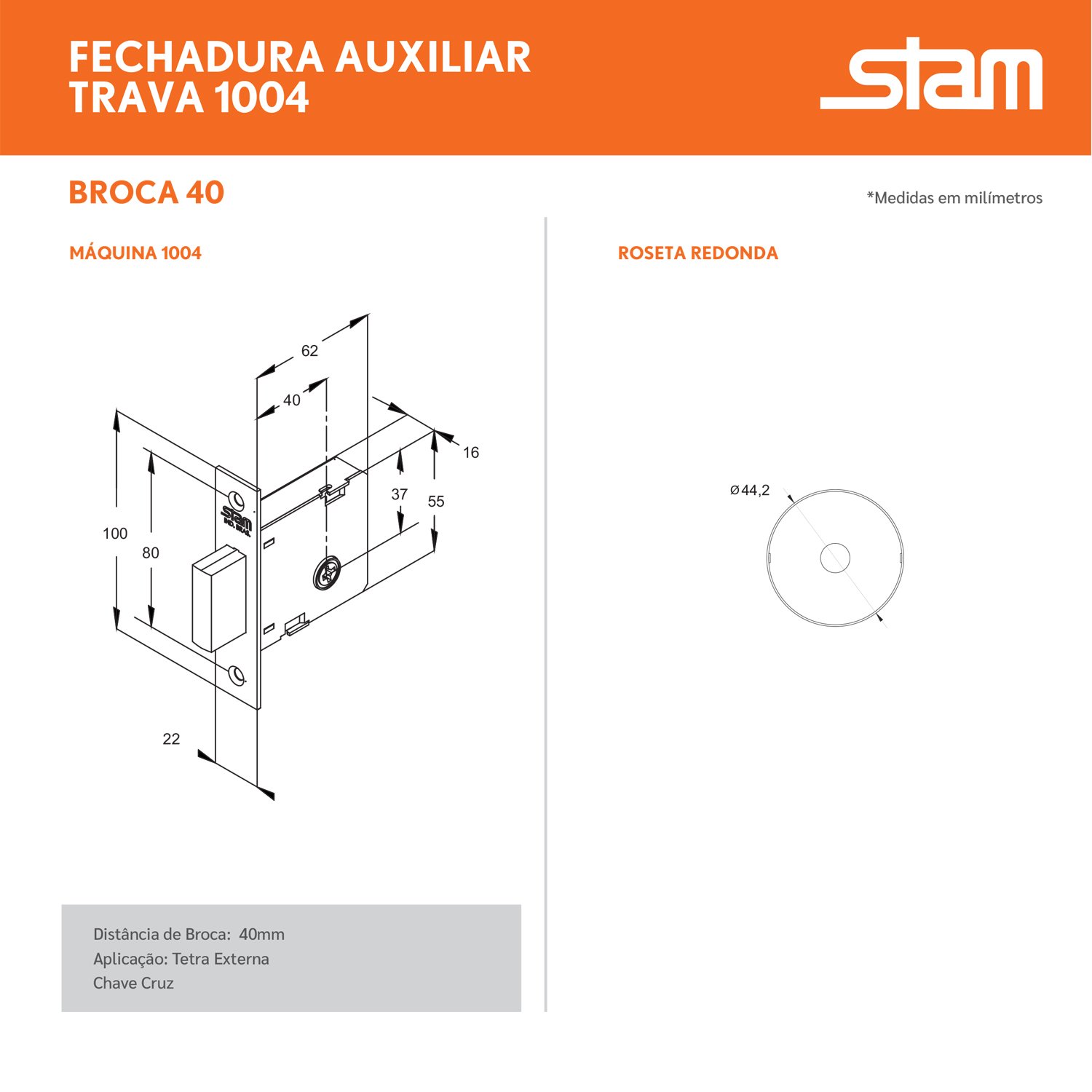 -Distância de Broca: 40mm;